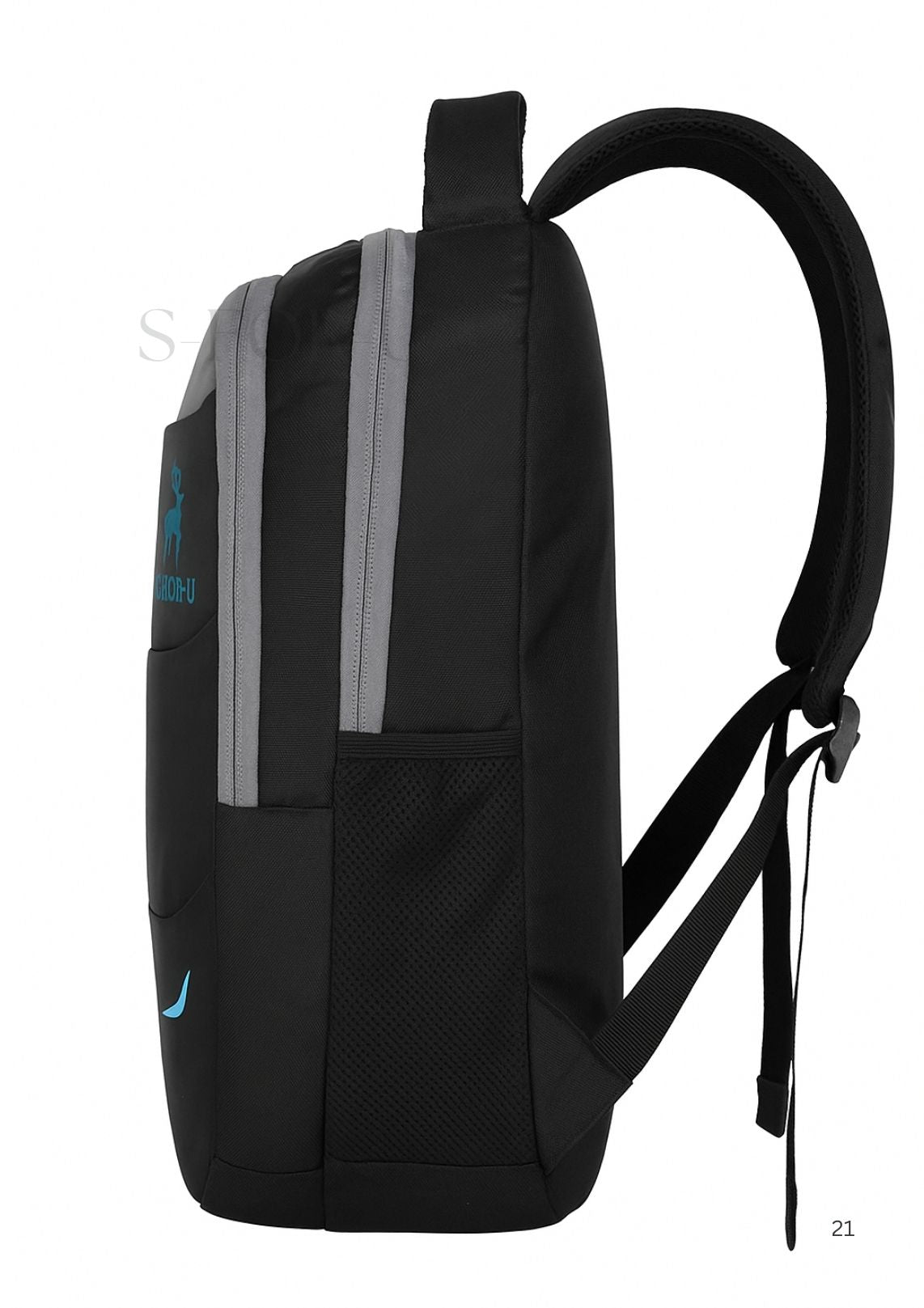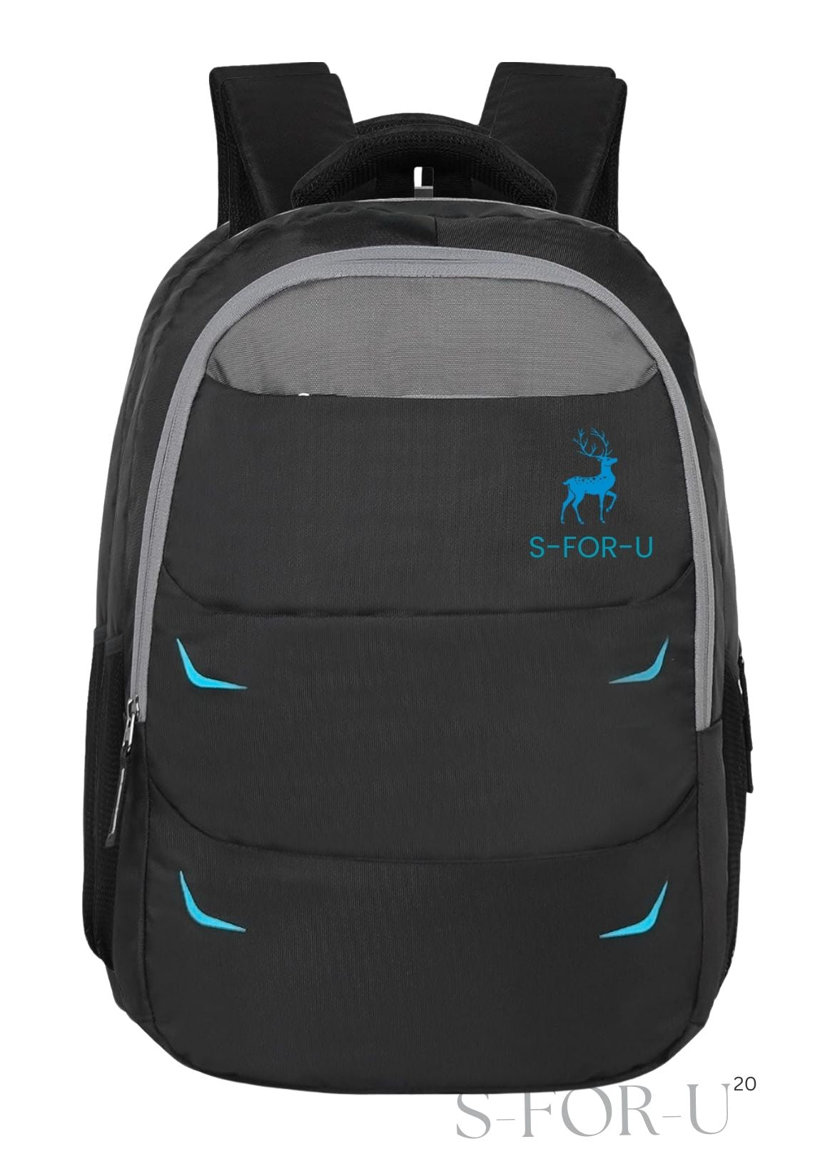 Engineered for the demands of student life and professional environments, this college backpack merges contemporary aesthetics with functional design. The striking black base, paired with teal accents and the distinctive S-FOR-U deer insignia, creates an instantly recognizable silhouette. Constructed from water-resistant material with reinforced padding on the back and shoulder straps, it distributes weight efficiently for extended wear. The organizational system includes multiple compartments and a front quick-access pocket, accommodating textbooks, electronics, and personal items with ease. Lightweight yet structurally sound, this pack transitions seamlessly from lecture halls to commutes to weekend excursions.